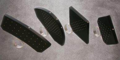 Серия колец «Страйт» - стереометрический объем, пластический архитектурный язык, математическая точность, прозрачные пластины оргстекла, изящные оптические эффекты...