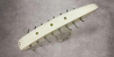 Поиск новых выразительных форм и стремление подчеркнуть тектонику предмета приводит мастера к использованию нетрадиционных материалов. Титан, железо, эбонит, бумага, оргстекло чертят диаграммы невероятных архитектурных композиций, выстраивают динамику сложных геометрических структур, создавая изящные оптические и визуальные эффекты.